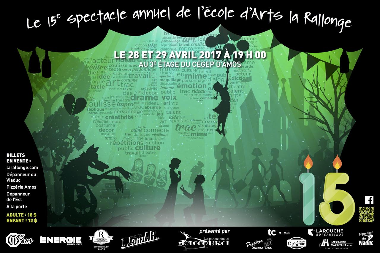 L’École d’Arts La Rallonge fête sa 15e année avec son 15e spectacle annuel sur la scène du Cégep d’Amos les 28 et 29 avril prochain